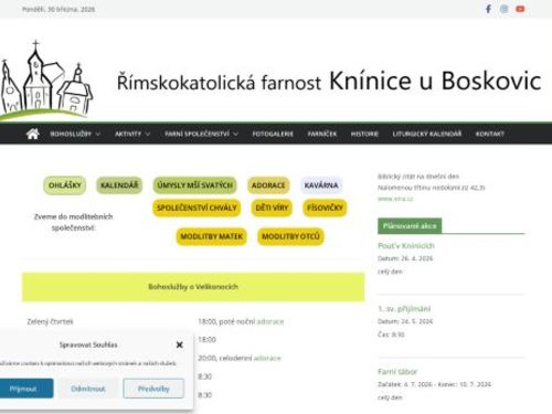 Pořádání bohoslužeb a poskytování informací o činnosti římskokatolické farnosti.