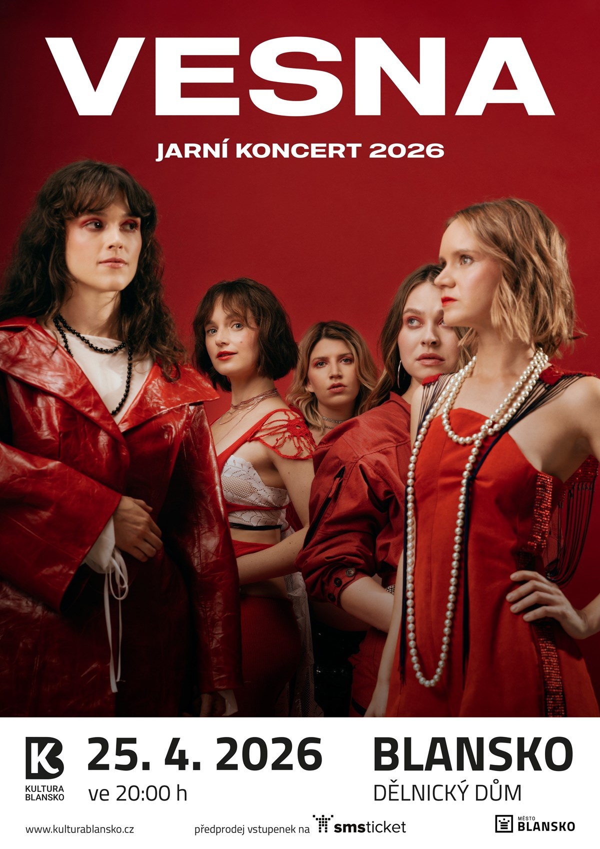 VESNA je: Patricie Kaňok, Bára Juránková, Olesya Ochepovskaya, Markéta Mužátková, Tereza ČepkováČasový harmonogram akce:19:00 otevření sálu20:00 začátek koncertu VESNA