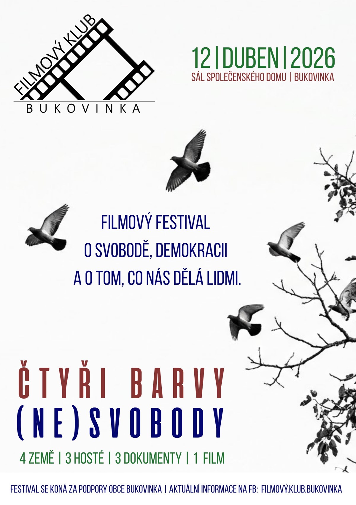 Filmový klub Bukovinka za podpory obce Bukovinka vás zve na unikátní festivalový den věnovaný svobodě, demokracii a lidskosti. Naším cílem není jen promítat, ale společně s vámi a vzácnými hosty hledat odpovědi na otázky, jak se žije v nesvobodě a jakou cenu má naše vlastní demokracie.