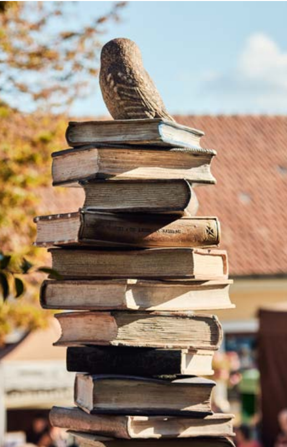 Náměstí v Kunštátu zdobí nová plastika. Jedná se o sovu sedící na knihách