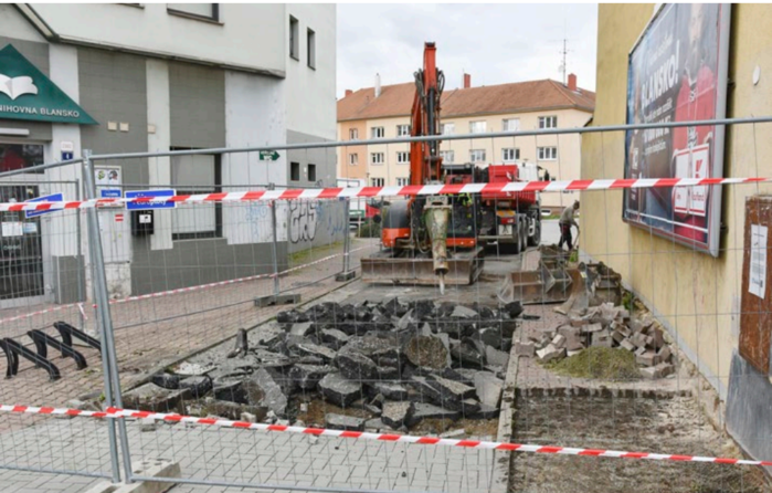 Stavební práce omezily průchod opravovaným prostorem z Rožmitálovy ulice směrem k ulici A. Skotáka. Na začátku prosince si také vyžádají krátkodobé uzavření knihovny i infocentra.