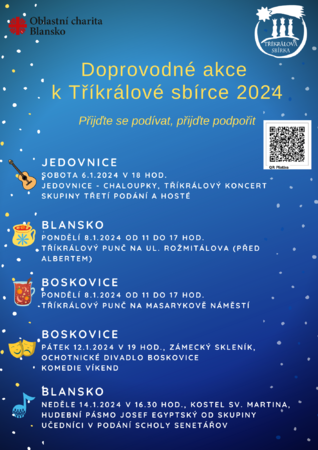 Do sbírky můžete přispět také přes webové stránky www.blansko.charita.cz/trikralovasbirka2024 nebo na účet Tříkrálové sbírky 66008822/0800 s variabilním symbolem 777966000 pro přímou podporu Charity Blansko. Děkujeme!