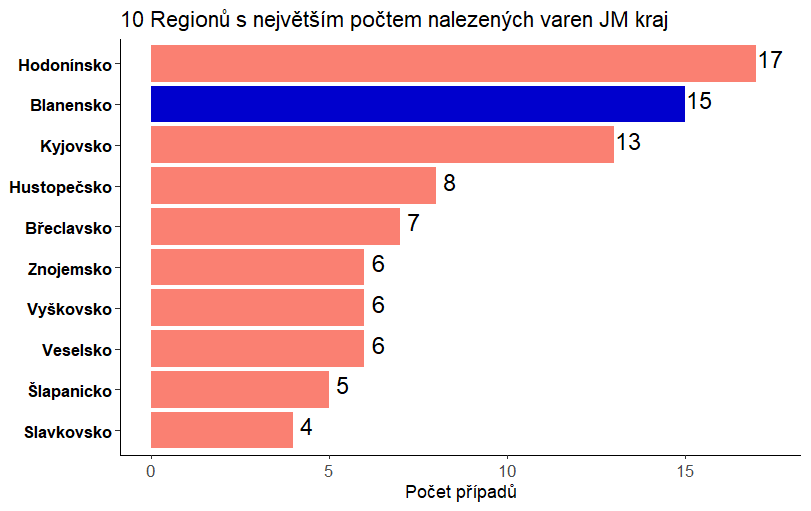 Podle Policejní mapy varen a pěstíren bylo na Blanensku od roku 2017 odhaleno celkem 15 varen pervitinu. Region se tím řadí na vrchol žebřícku – výše už je jenom Hodnínsko (17). Nicméně policejní statistiky neukazují úplnou realitu pervitinové produkce, ve které se regiony nacházejí tudíž reálná produkce v regionech je zpravidla vyšší a tudíž i pozice ve středu může značit alarmující výskyt. Ostatní regiony (Vyškovsko, Znojemsko) zaznamenaly nižší počty, obvykle jen jednotky případů. Z čísel je patrné, že drogová výroba se nevyhýbá žádnému koutu kraje, kromě Ivančicka – avšak právě Blanensko patří k nejzatíženějším.