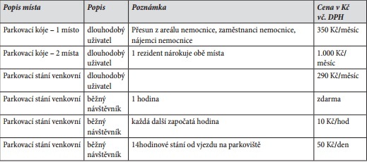 Zatím mohou využít parkoviště zdarma. Placení za parkování bude zavedeno později (asi za týden). Řídit se bude ceníkem, který schválila na své 14. schůzi Rada města Blanska. Viz konec článku. Část parkovacích míst si budou moci dlouhodobě pronajmout zaměstnanci nemocnice.
