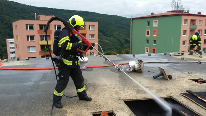 V Adamově hořela střecha bytovky. Hasiči vyhlásili druhý stupeň poplachu